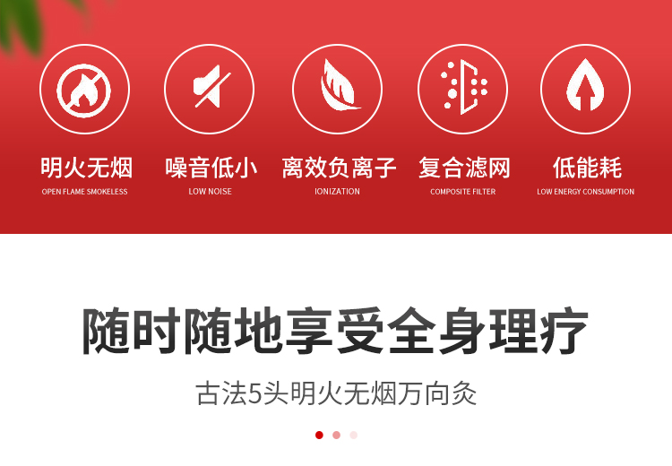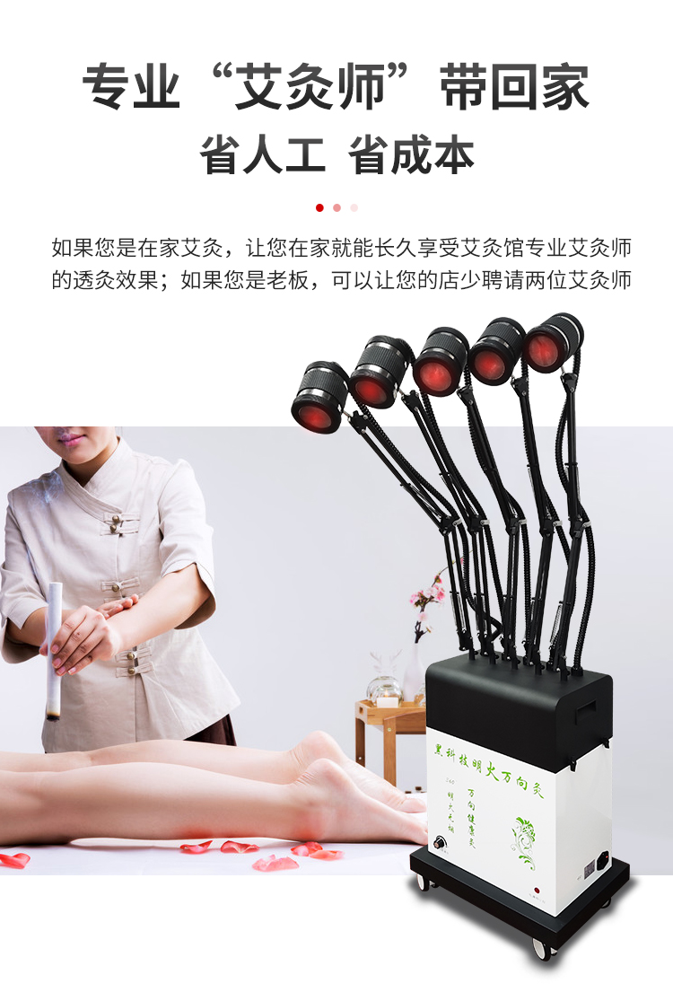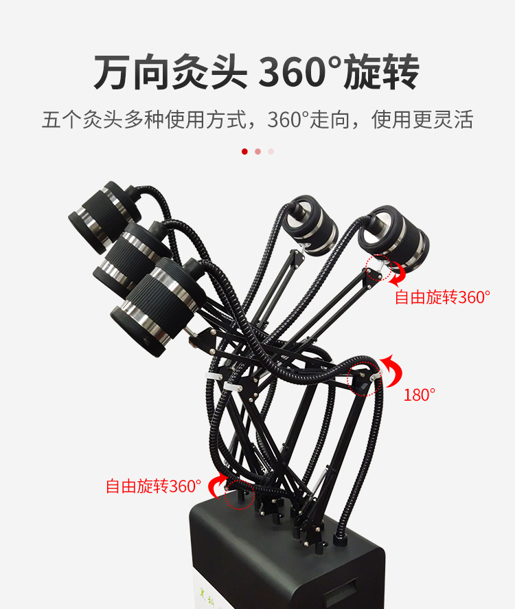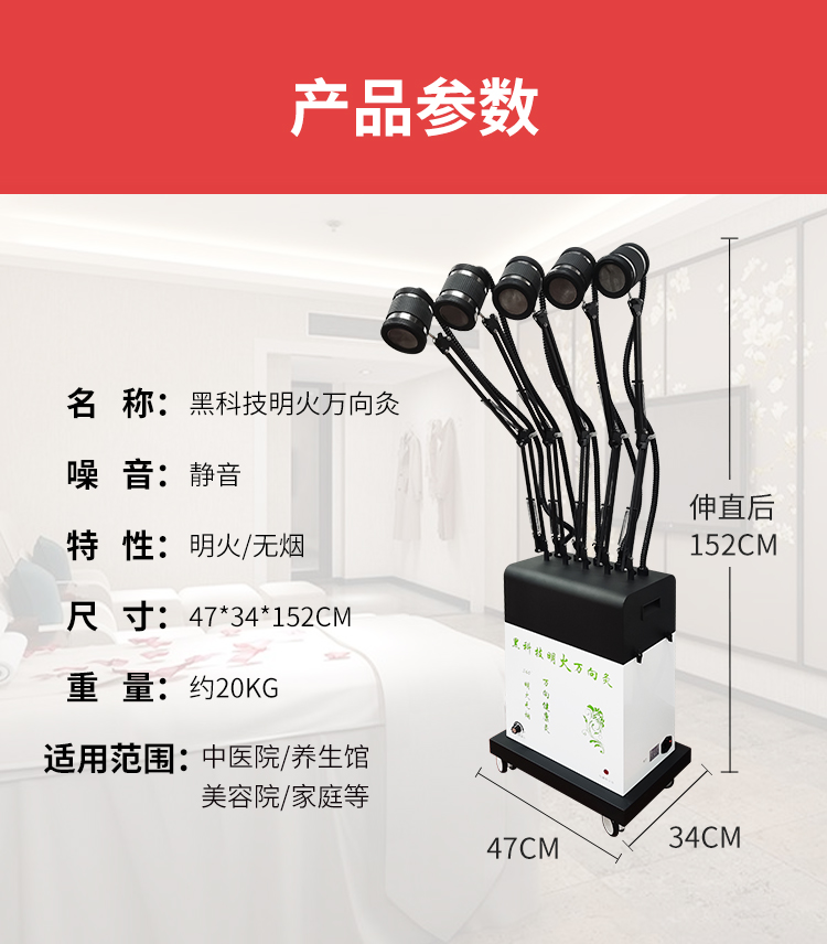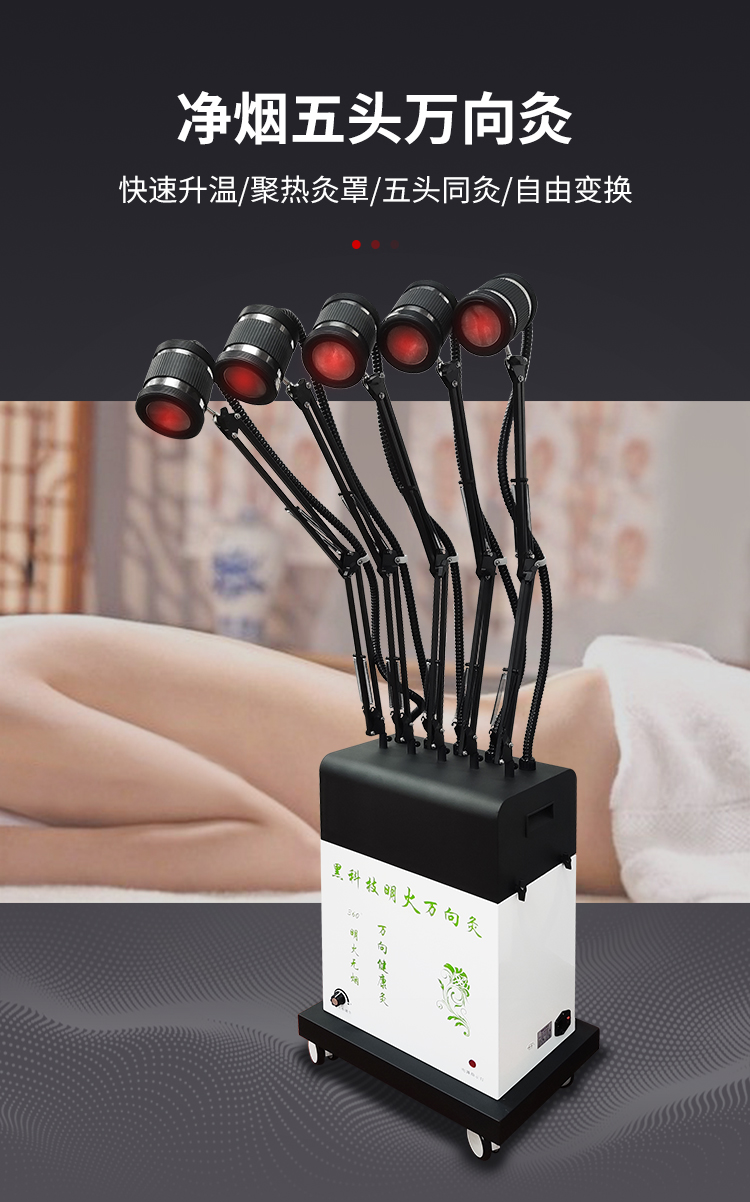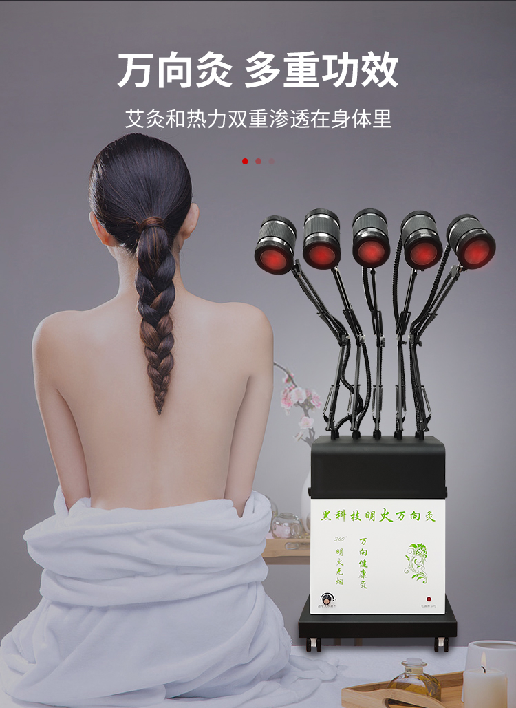 明火萬向灸是一款明火無煙、具有強(qiáng)力滲透的艾灸儀器,其效果是普通艾灸的十倍;具有5個(gè)艾灸頭,可同時(shí)操作5個(gè)部位;灸頭可任意調(diào)節(jié)方向,使用方便靈活。